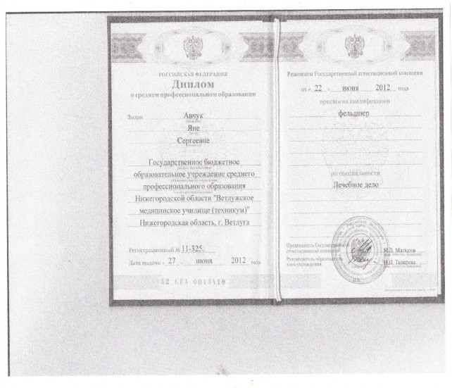 1.Среднее профессиональное-фельдшер 2008-2012 год